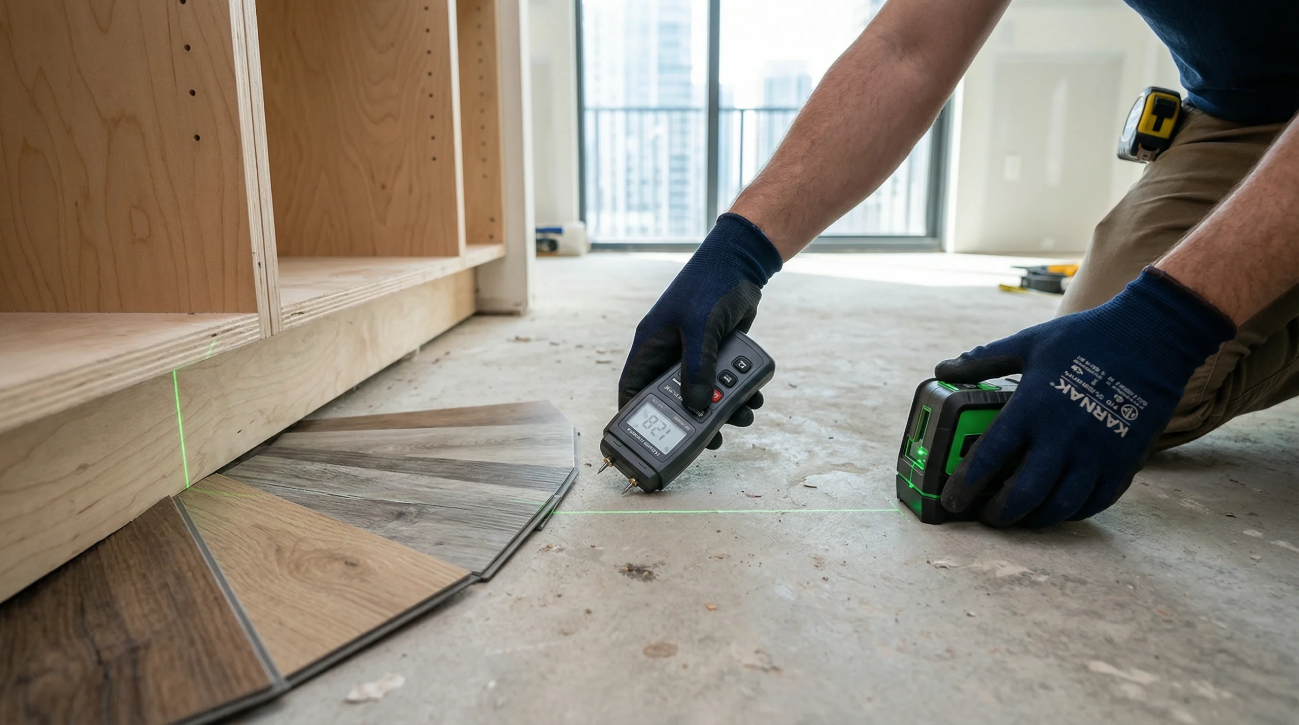 Final cleaning involves complete dust and debris removal using HEPA vacuums and tack cloths. Substrates must be completely clean, dry, and flat before underlay installation begins. We perform final moisture testing at this stage—if readings have changed since initial assessment, we investigate causes before proceeding. Moisture issues only worsen after covering substrates with waterproof flooring.