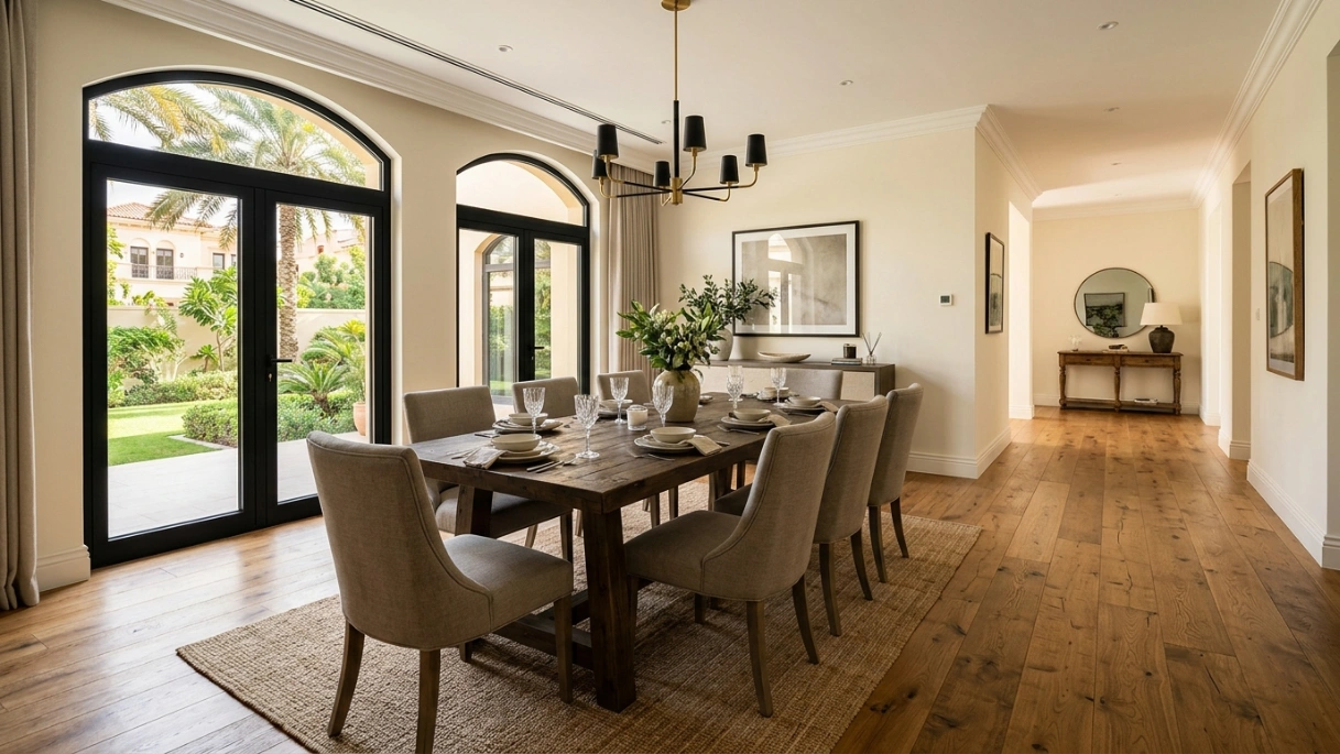 For most Dubai homes, engineered wood delivers equal aesthetics with better performance and value.