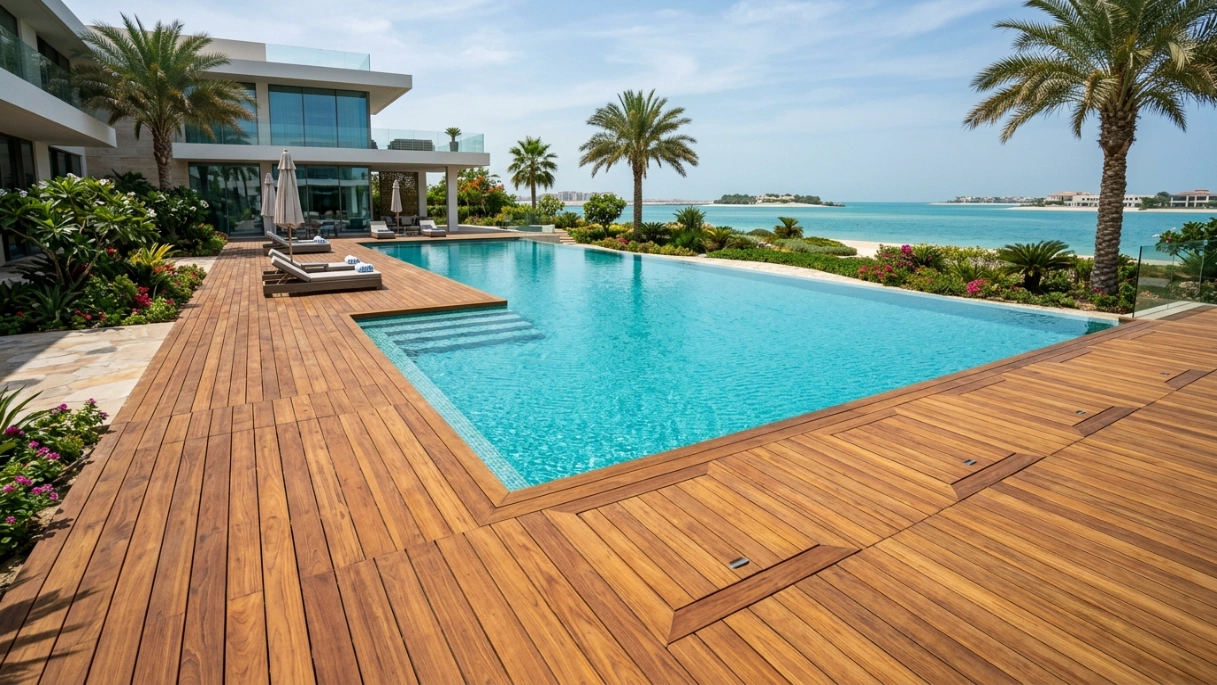 European oak, teak, walnut, merbau, and select acacia varieties perform well in Dubai due to dimensional stability.
